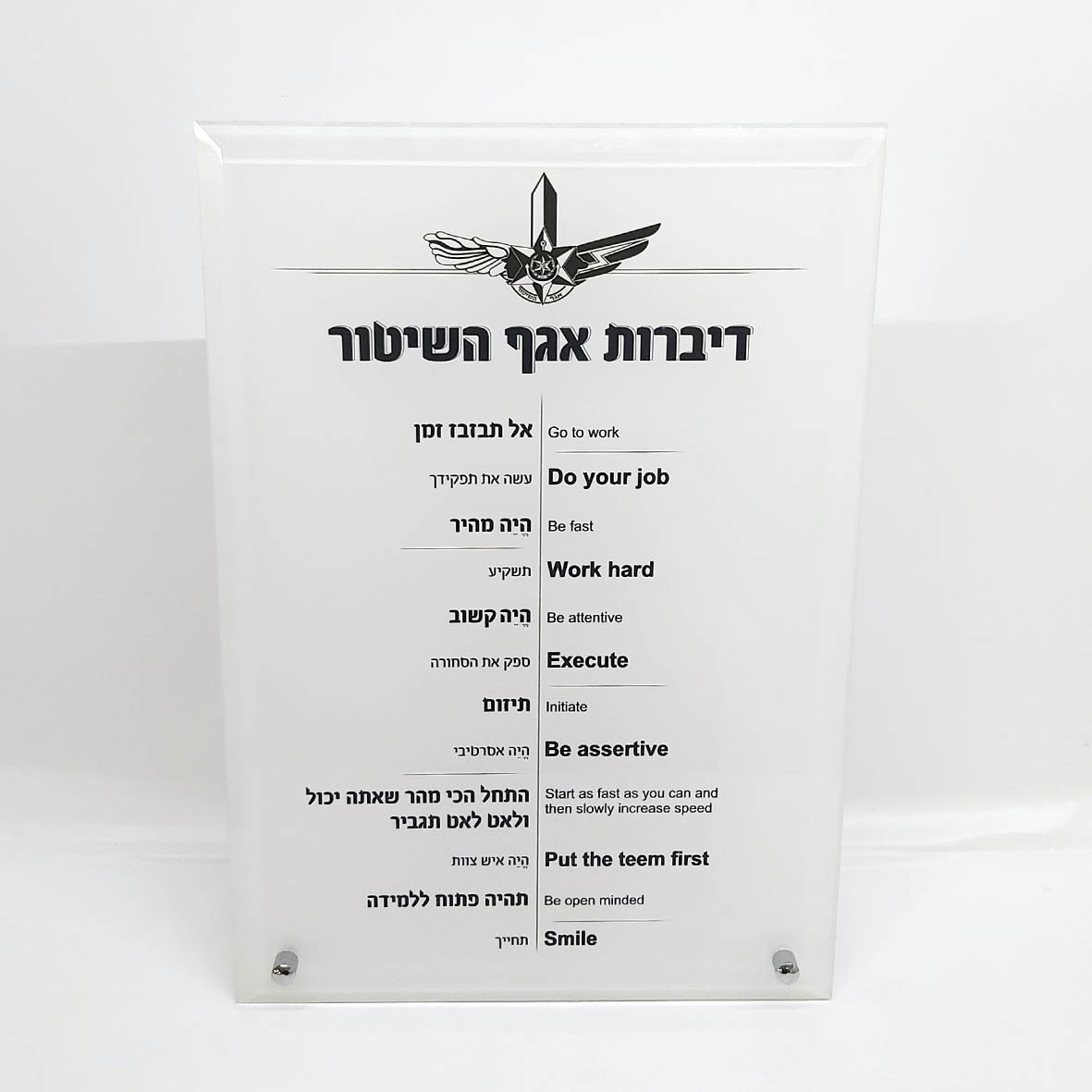 מגן זכוכית A5 לרוחב עם 2 רגלי מתכת